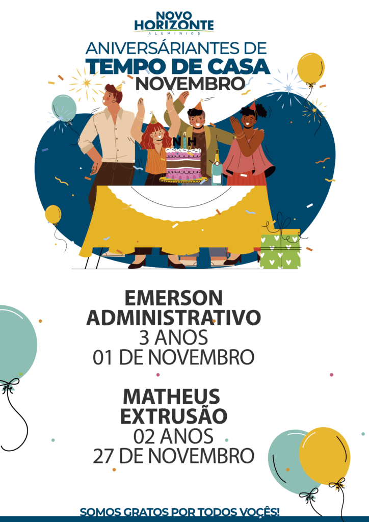 Neste mês, celebramos os 28 anos da Novo Horizonte Alumínios! E, para marcar essa data tão especial, queremos homenagear nossos colaboradores que estão conosco há 10, 15, 20, 25 e até 28 anos! 🙌