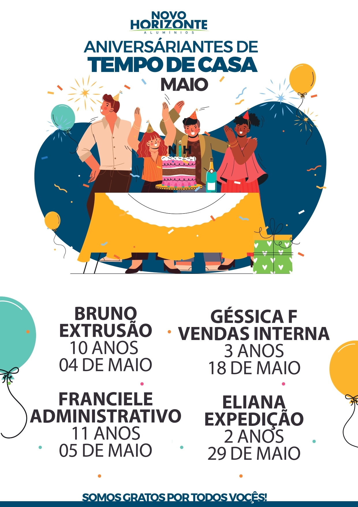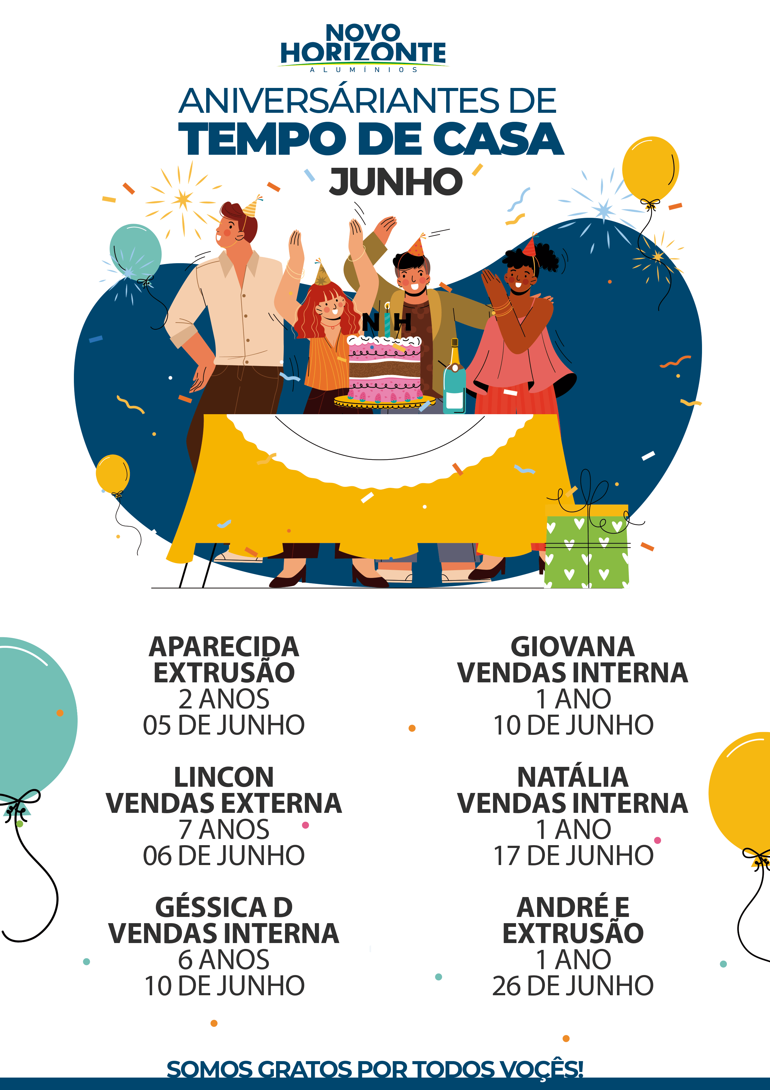 Neste mês, celebramos os 28 anos da Novo Horizonte Alumínios! E, para marcar essa data tão especial, queremos homenagear nossos colaboradores que estão conosco há 10, 15, 20, 25 e até 28 anos! 🙌